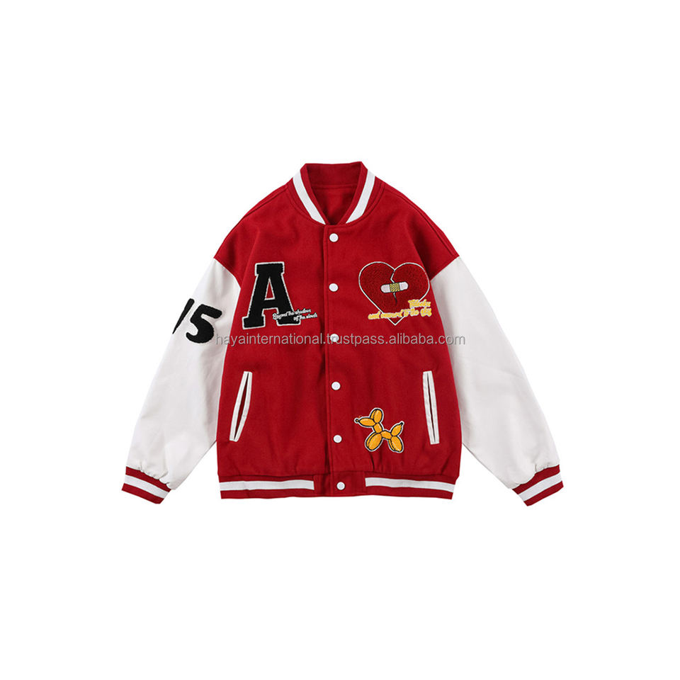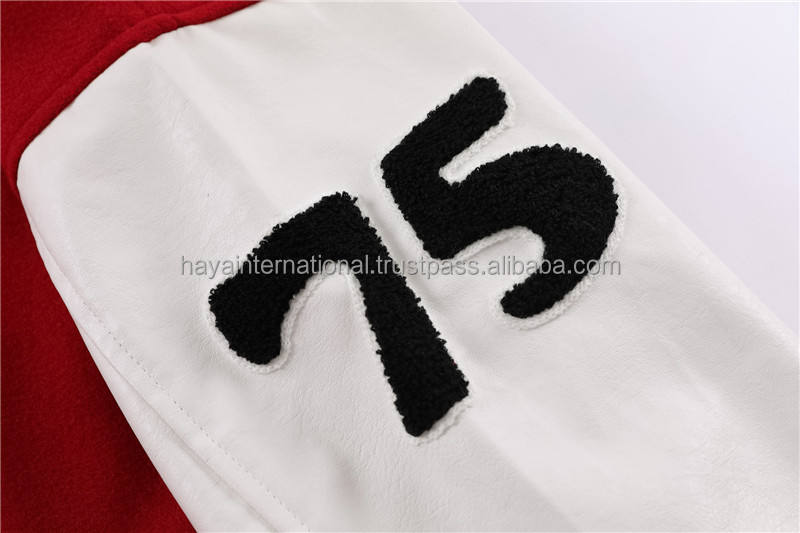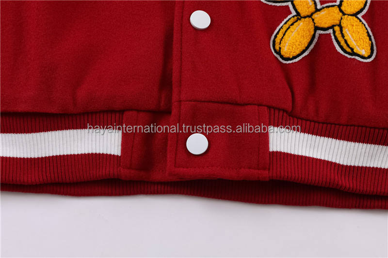 เสื้อแจ็คเก็ตบอมเบอร์ผู้ชายแบบมีปกตั้ง ปักลายเชนิลล์ตามสั่ง สำหรับฤดูหนาว พร้อมโลโก้ด้านหน้า