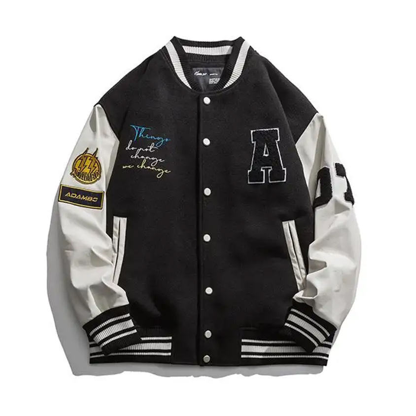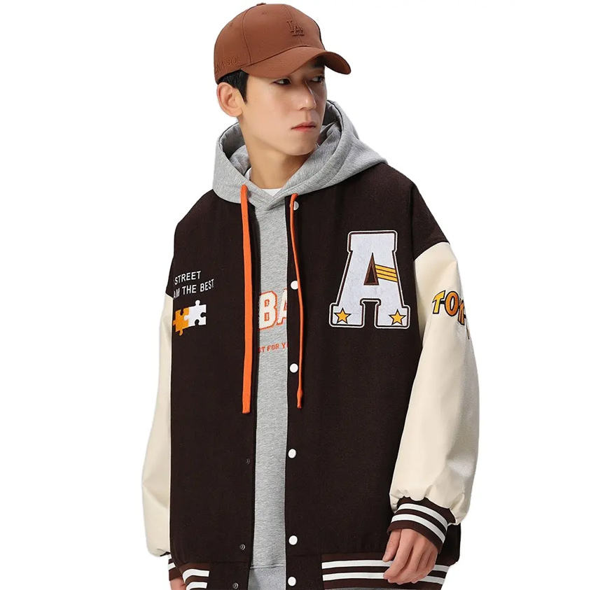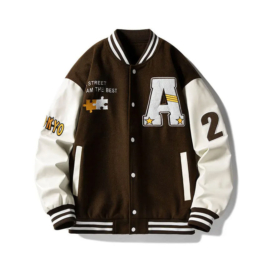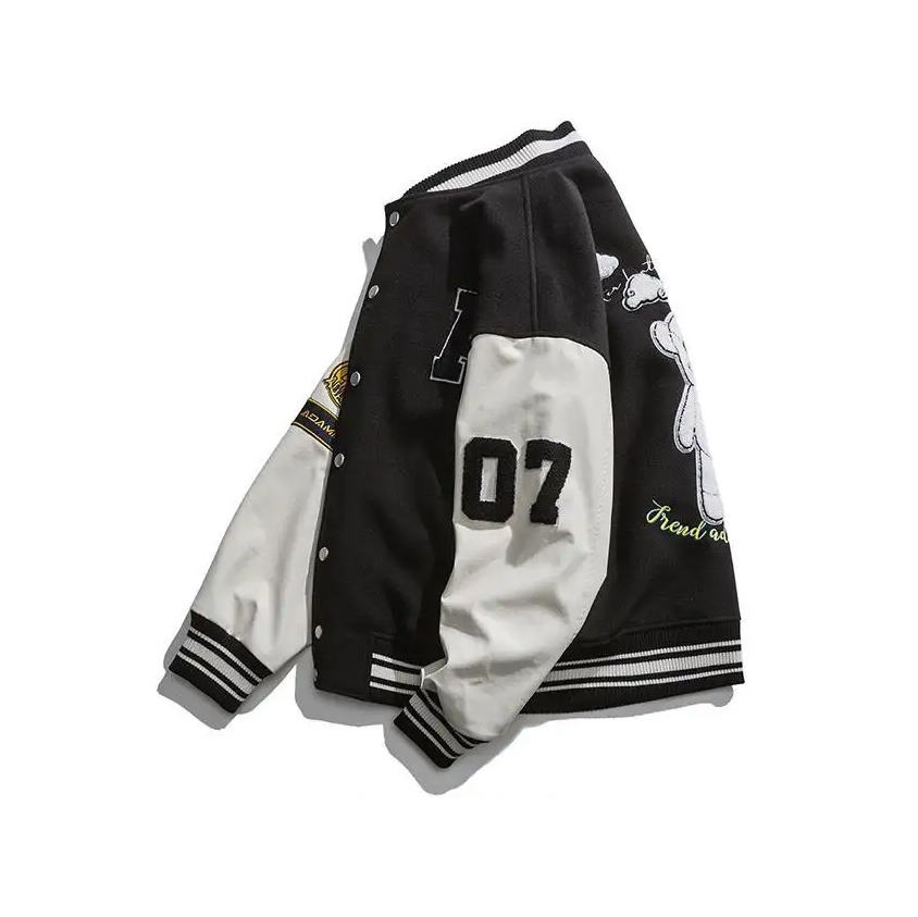 แจ็กเก็ตเบสบอลฤดูหนาวสำหรับผู้ชายมีลายตัวอักษรไม่ซ้ำใครแผ่นปักกำมะหยี่ตามสั่ง
