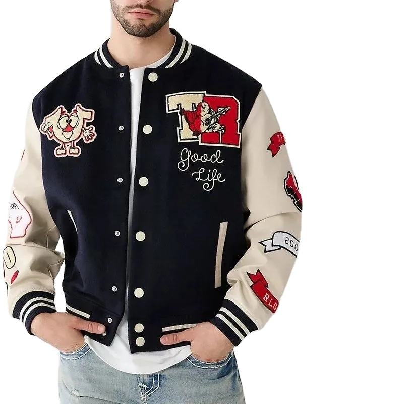 เสื้อแจ็คเก็ตวาร์ซิตี้ปักลายเชนิลล์แบบสั่งทำพิเศษ คอตั้ง สไตล์เบสบอลสำหรับผู้ชายและผู้หญิง สไตล์เลตเตอร์แมน
