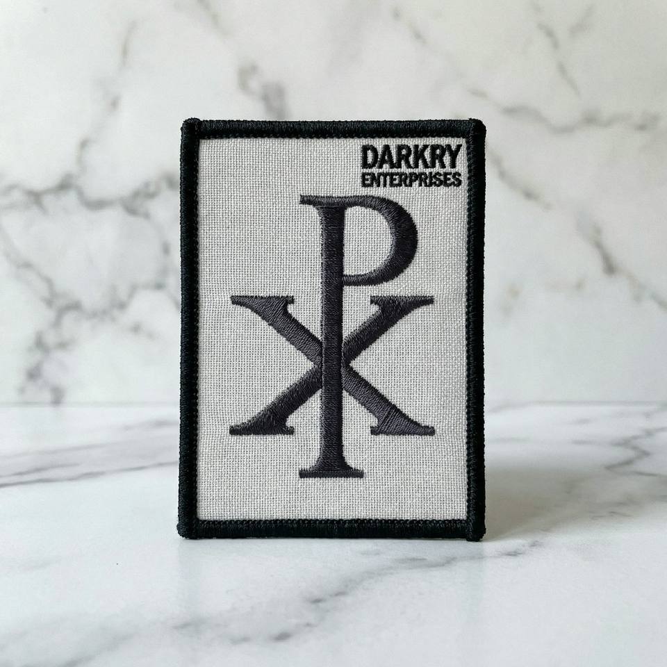 แผ่นปักลายชิโรแบบกำหนดเอง ป้ายปักด้วยเครื่องจักรสำหรับติดเสื้อผ้า ตราสัญลักษณ์ทางศาสนาคริสต์ ลายกรีก โมโนแกรม