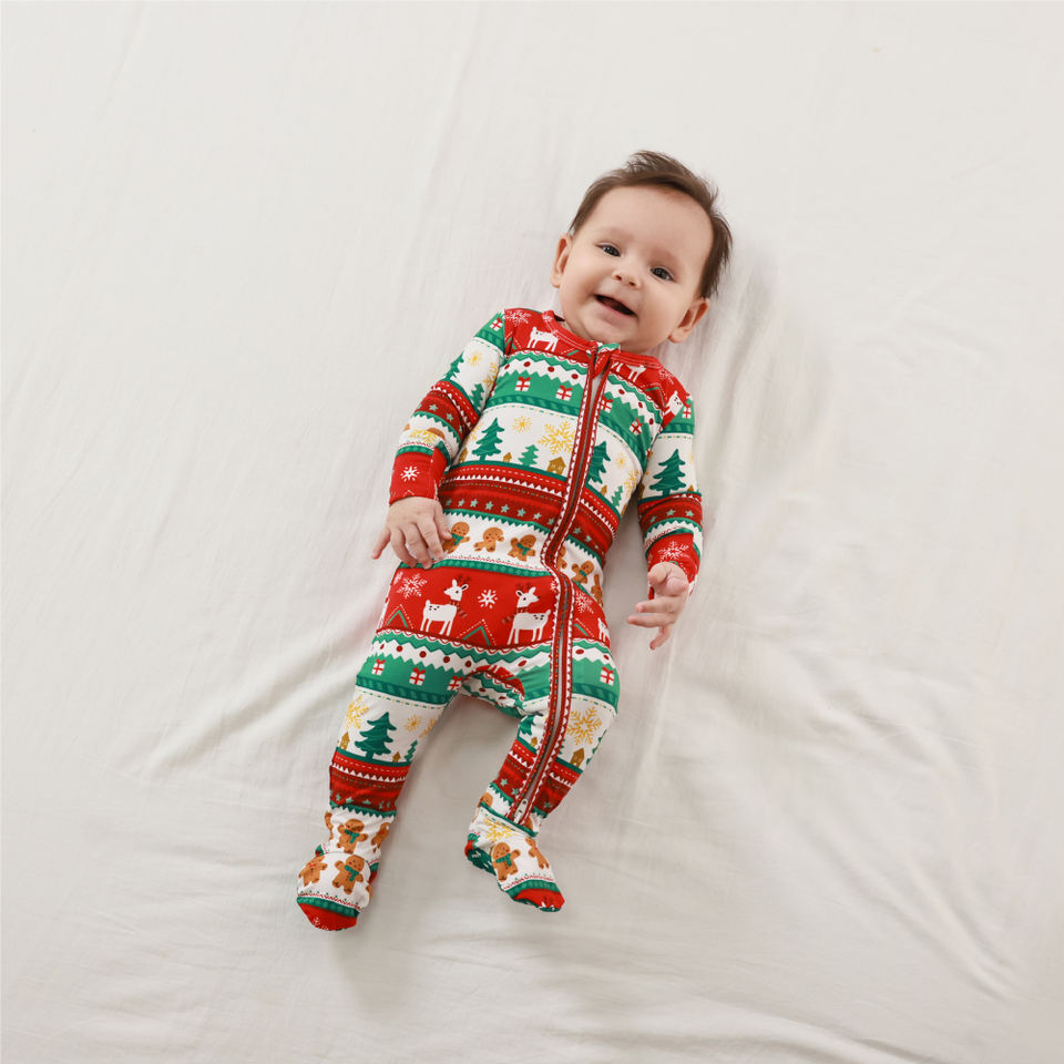 ชุดรอมเปอร์เด็กทารกแขนยาวลายคริสต์มาส ชุดจั๊มสูทเด็กอ่อนแบบมีซิป ชุดนอนคริสต์มาส เสื้อผ้าเด็กวัยหัดเดิน ชุดบอดี้สูทเด็กทารกผ้าไผ่