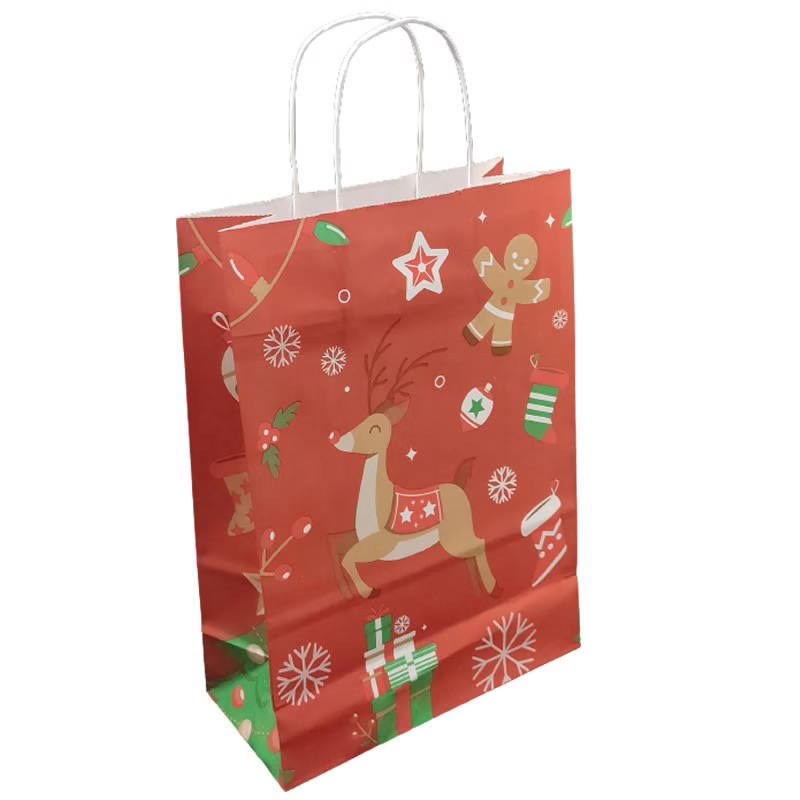 ถุงกระดาษคราฟท์คลาสสิกแบบกำหนดเองสำหรับคริสต์มาส ทำจากกระดาษรีไซเคิล 100% ดีไซน์แบบใช้แล้วทิ้ง สำหรับบรรจุภัณฑ์ของขวัญวันคริสต์มาสอีฟ สำนักงาน