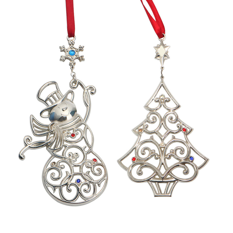 เครื่องประดับต้นคริสต์มาสตามสั่งจี้โลหะห้อยโลหะรูปซานตาคลอสเกล็ดหิมะแบบกลวงตกแต่งต้นคริสต์มาส