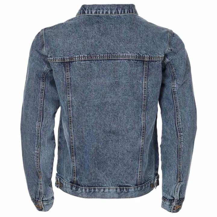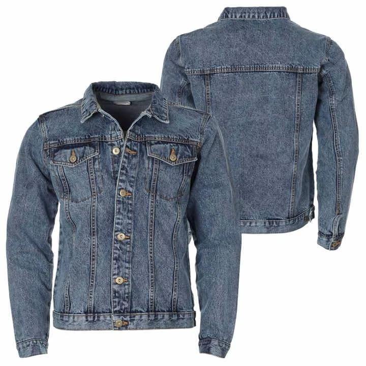 Custom Classic Dark Blue Men Denim Jacket Slim Fit Jean Trucker Style with Button Closure Oem Orders