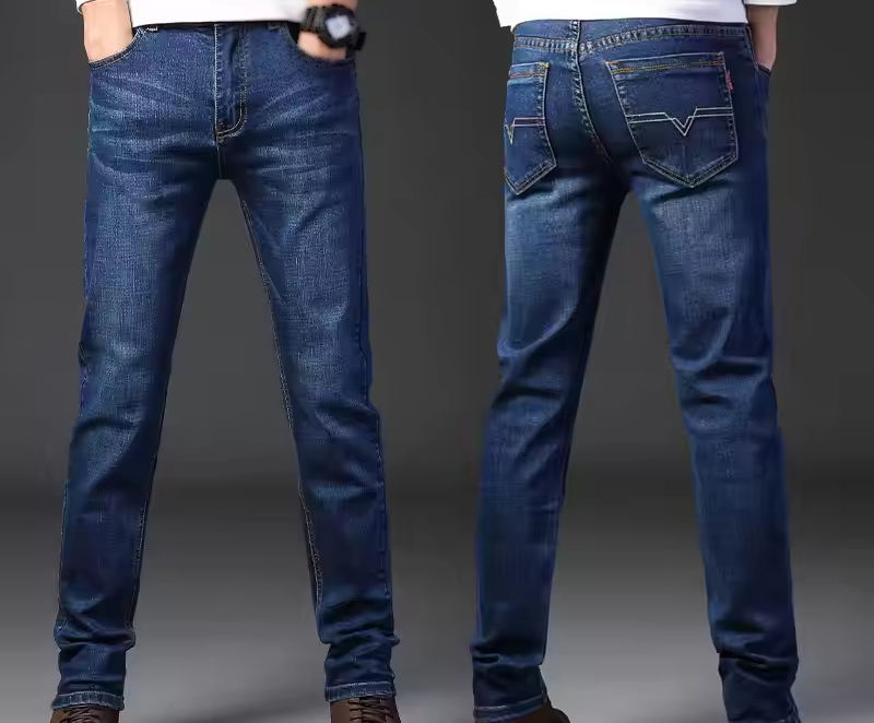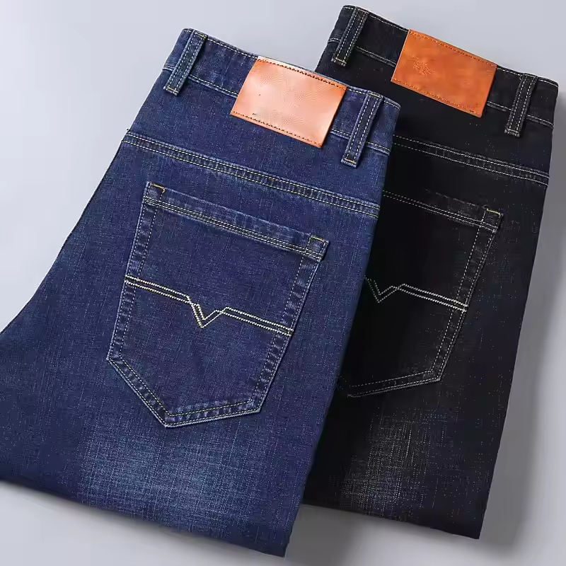 กางเกงยีนส์ผู้ชายขาตรงสำหรับผู้ชายกางเกงยีนส์ขายาวบางแบบดั้งเดิมสำหรับฤดูใบไม้ผลิและฤดูใบไม้ร่วง