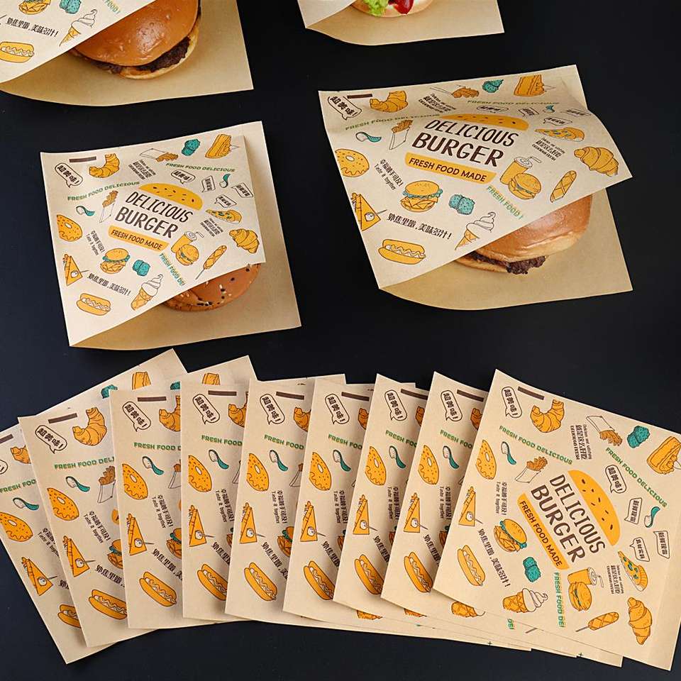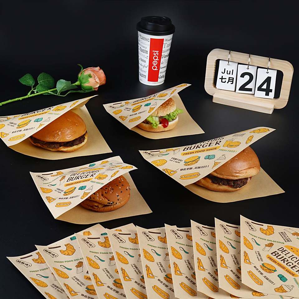 กระดาษห่อแซนวิชแบบคลาสสิกเนื้อนุ่ม กันน้ำมัน รีไซเคิลได้ พร้อมช่องสำหรับใส่ขนมโดนัท รูปทรงสามเหลี่ยม