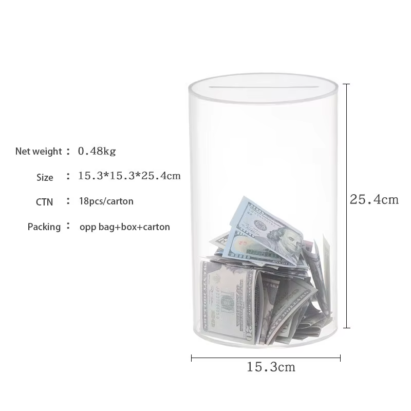 กระปุกออมสินอะคริลิกใสแบบเรียบง่ายน้ำหนักเบาเป็นมิตรต่อสิ่งแวดล้อม