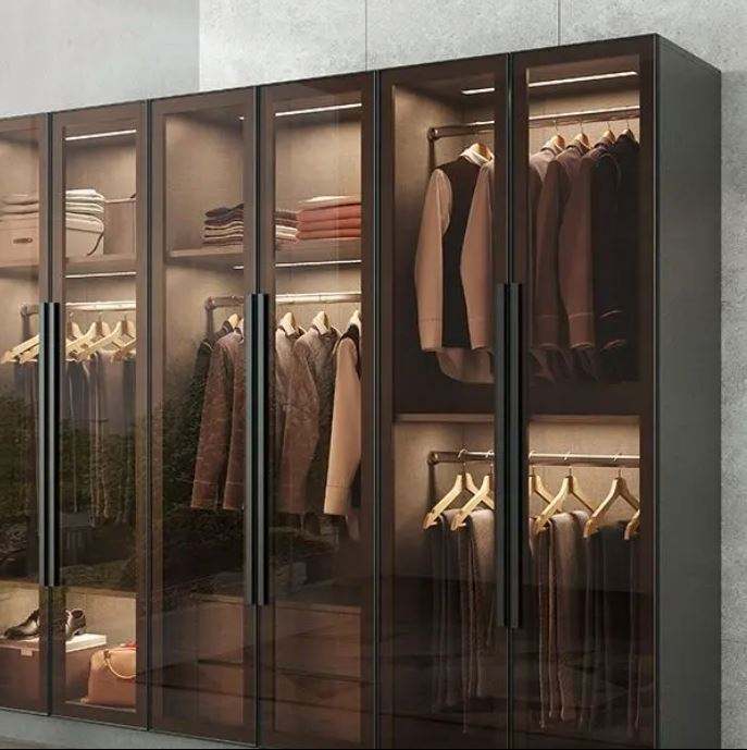 ออกแบบตู้เสื้อผ้าแบบกำหนดเอง งานฝีมือคุณภาพสูง ตู้เสื้อผ้าแบบเปิด วัสดุไม้ MDF ดีไซน์ภายในแบบวอล์กอิน
