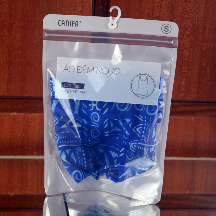 บรรจุภัณฑ์เสื้อผ้าที่กำหนดเองยืนขึ้นถุง Ziplock พลาสติกที่มีไม้แขวนเสื้อขนาดเล็ก