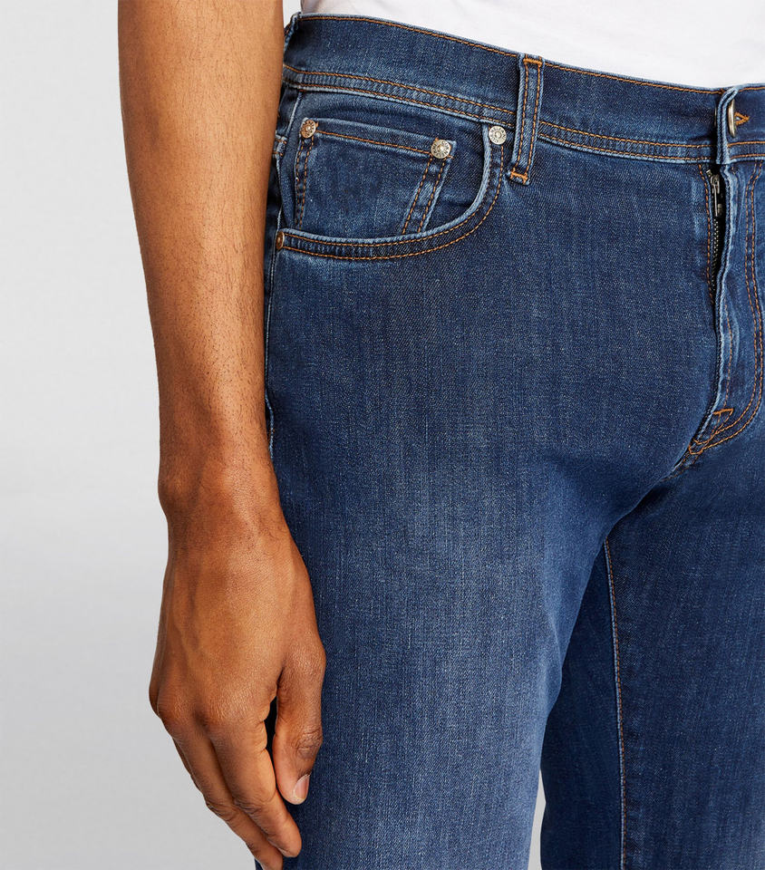กางเกงยีนส์ซักสีฟ้าสไตล์สตรีทแวร์สำหรับผู้ชายฤดูร้อนแนววินเทจระบายอากาศได้ดีเป็นมิตรต่อสิ่งแวดล้อม