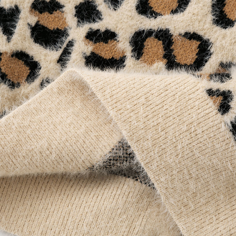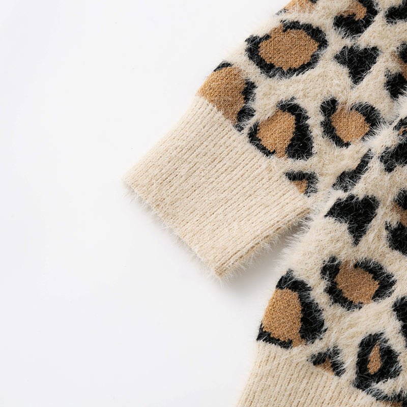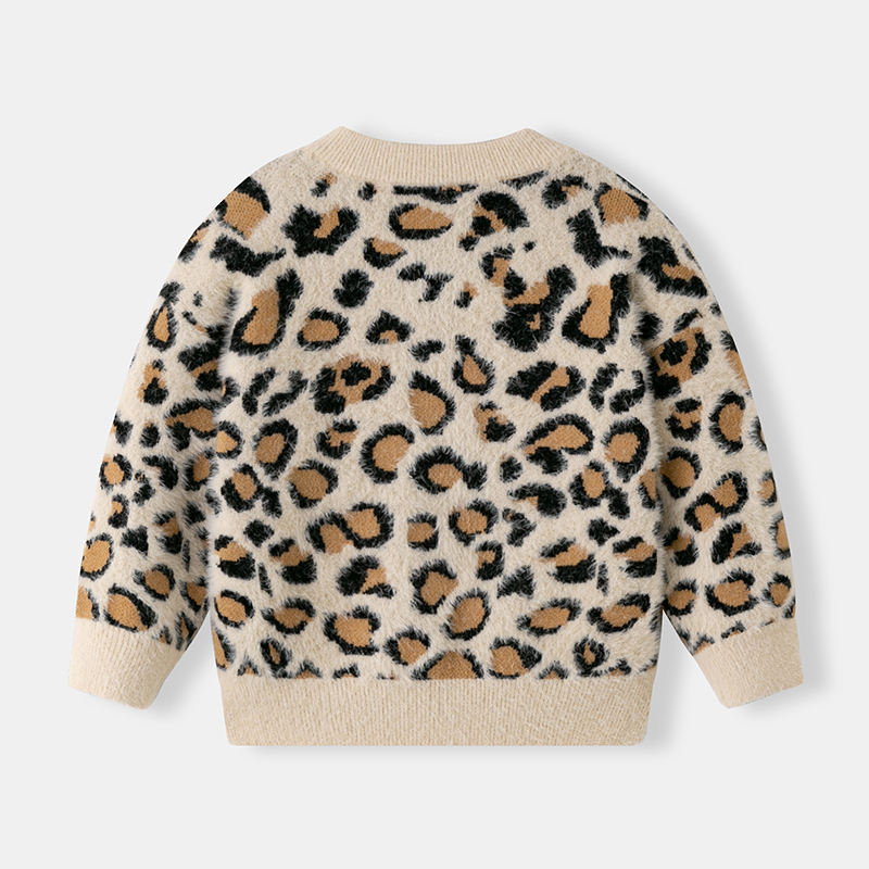 Custom Clothing Manufacturers' Cute Leopard Print Bow Tie Cardigan Toddler Girl Sweater Hand Knitted