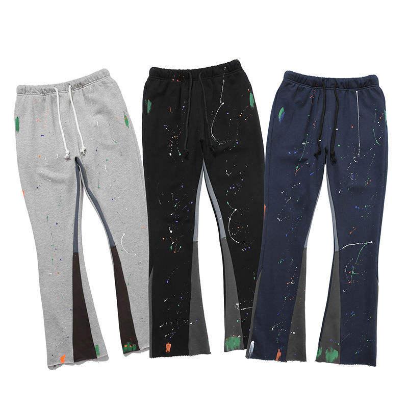 กางเกงวอร์มขาบานสำหรับผู้ชายกางเกงสเวตเตอร์ขาบานลายกราฟิกเอวยืดได้สไตล์สตรีท