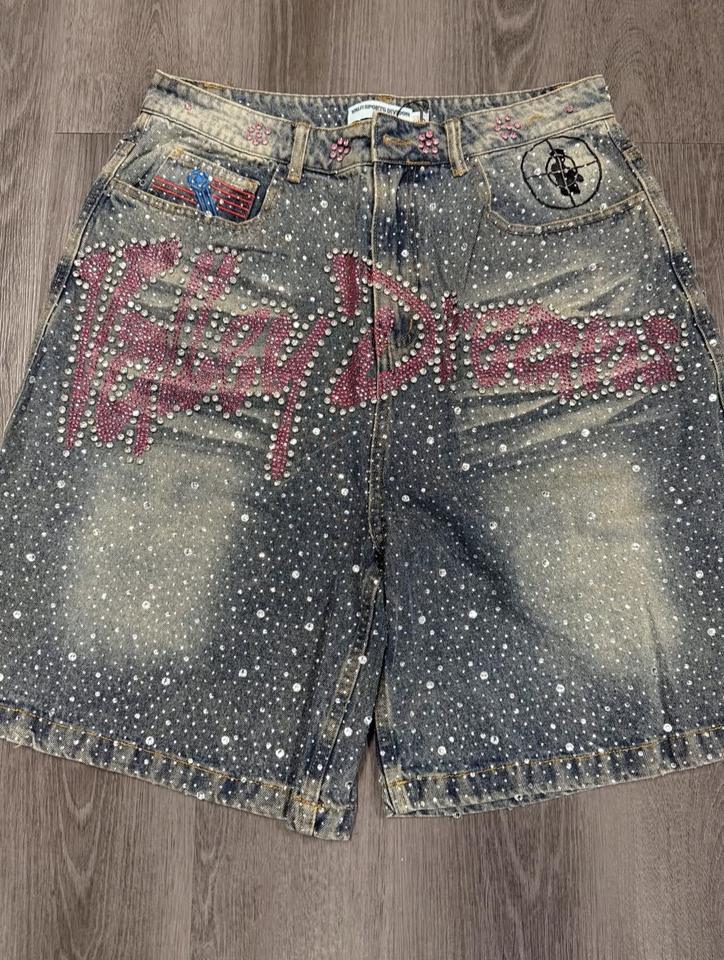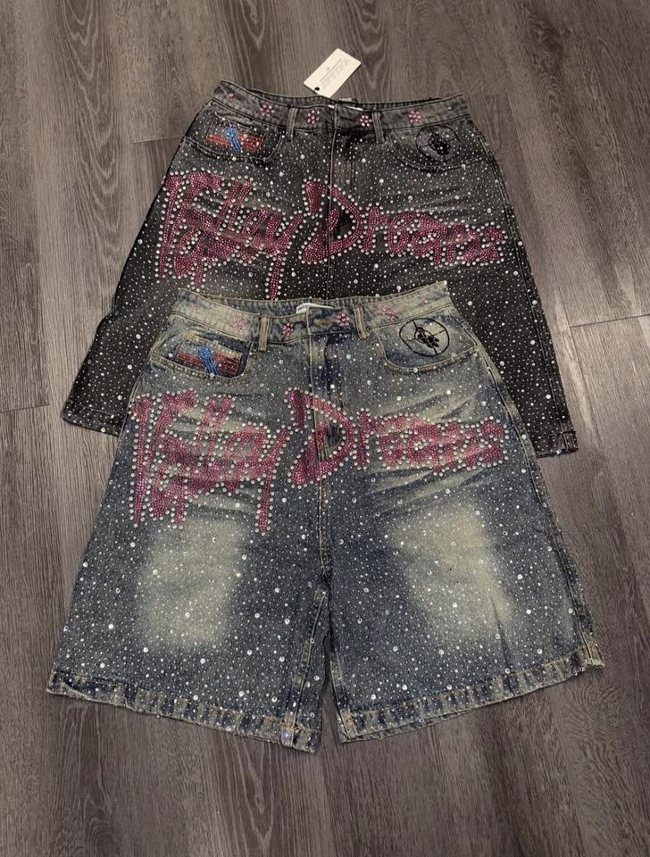 Custom Clothing Summer Breathable Quick Dry Patchwork Pattern Mid Waist Retro Hem Men's Denim Shorts with Custom Logo