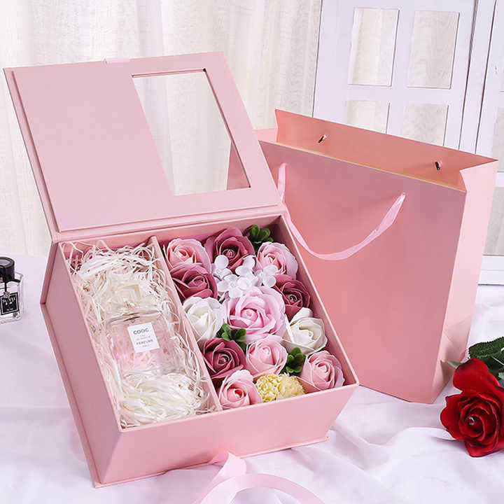กล่องของขวัญดอกไม้แม่เหล็กแบบกำหนดเองได้พร้อมฝาปิดหน้าต่าง รุ่น PBX115 สำหรับบรรจุภัณฑ์เครื่องประดับ