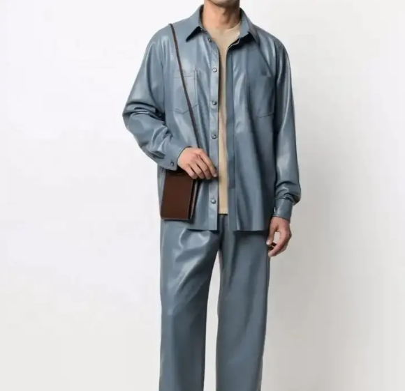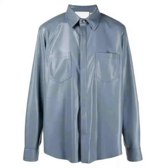 เสื้อเชิ้ตหนังแท้สีดำ แขนสั้น ปกคอปกแบบสั่งทำพิเศษ สำหรับฤดูใบไม้ผลิและฤดูใบไม้ร่วง ติดกระดุมหน้า มีกระเป๋าหน้าอก สำหรับผู้ชาย