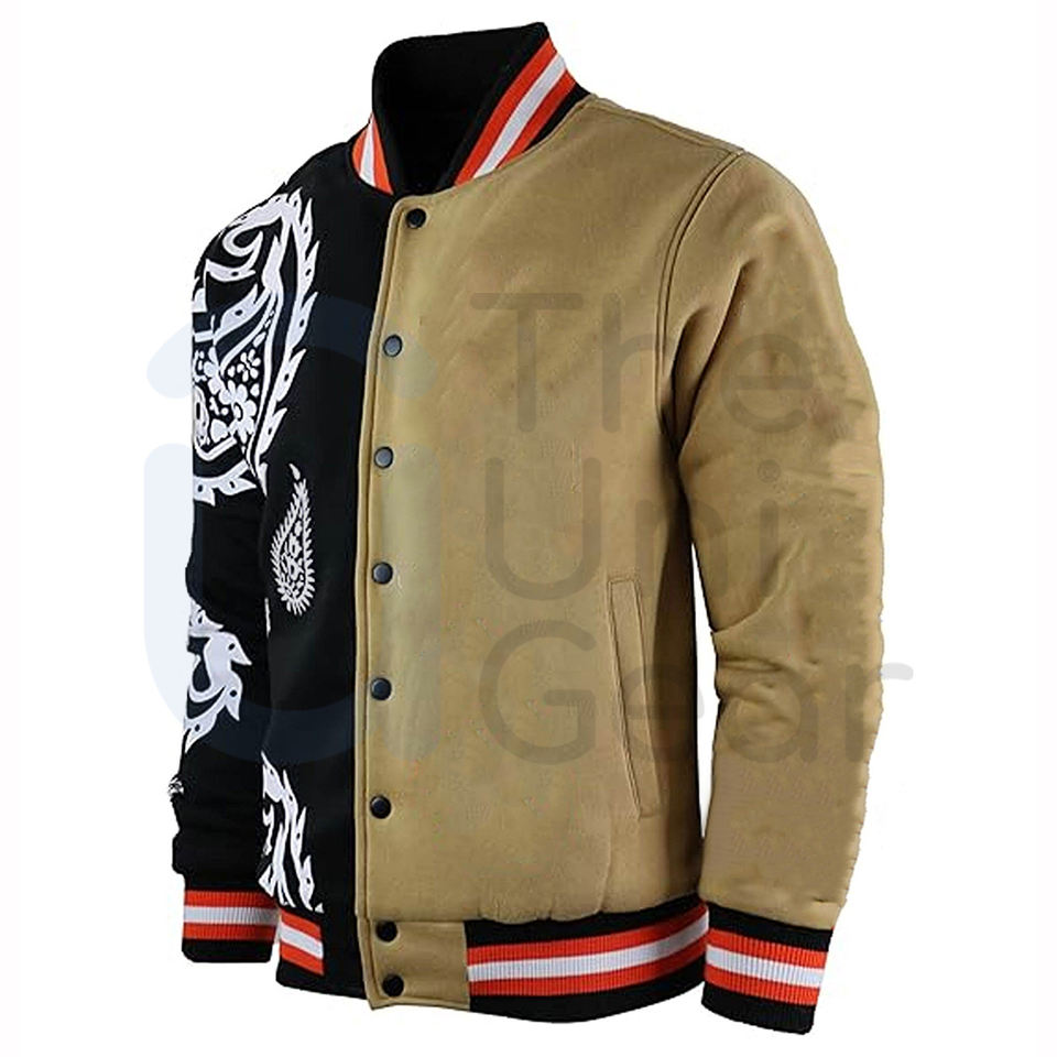 แจ็กเก็ตเบสบอลวิทยาลัยผู้ชายผู้หญิงวินเทจฤดูหนาวคอตั้งโลโก้ด้านหน้าเป็นมิตรกับสิ่งแวดล้อม100% บริการ OEM ตามสั่ง
