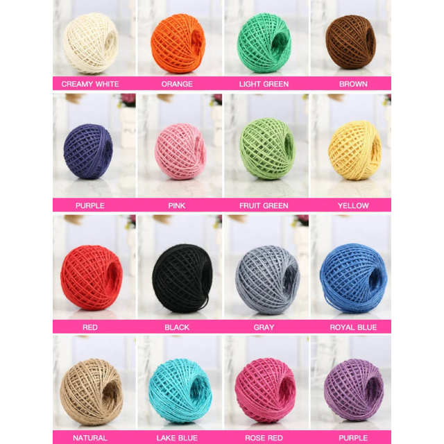 ปอกระเจาเส้นใหญ่1มม. 1.5มม. 2มม. 3มม. สีแบบกำหนดเองสายปอกระเจาและมาโครเม่สำหรับบรรจุภัณฑ์เส้นใหญ่และเชือกคอร์ด