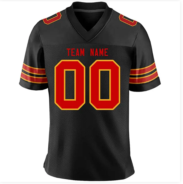เสื้อเจอร์ซีย์ฟุตบอลอเมริกันสำหรับผู้ชายผู้หญิงเยาวชนพิมพ์ลายตาข่ายหมายเลขทีมตามสั่งสี