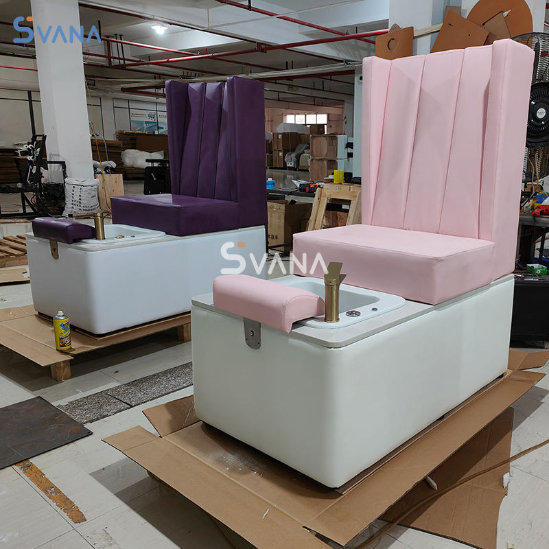 เฟอร์นิเจอร์ร้านเสริมสวยสีที่กําหนดเอง สถานีเล็บเท้าที่ทันสมัย เก้าอี้เล็บเท้าสีชมพูที่สะดวกสบาย
