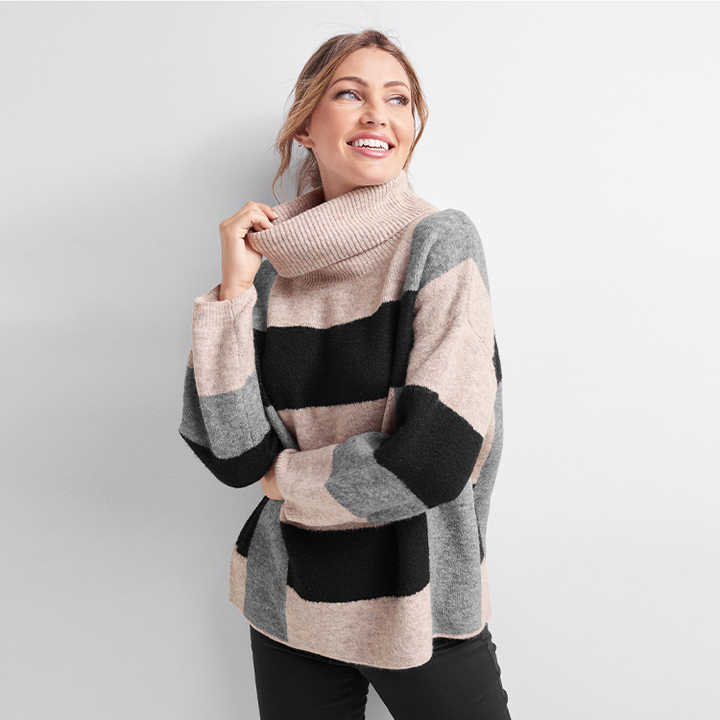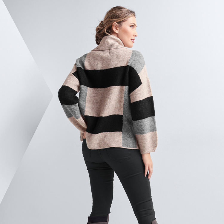 Custom Color Block Wool Women's Sweater Winter Women Fashion Turtle Neck Pullover Knitwear Designer Thick Warm Knitted Sweter