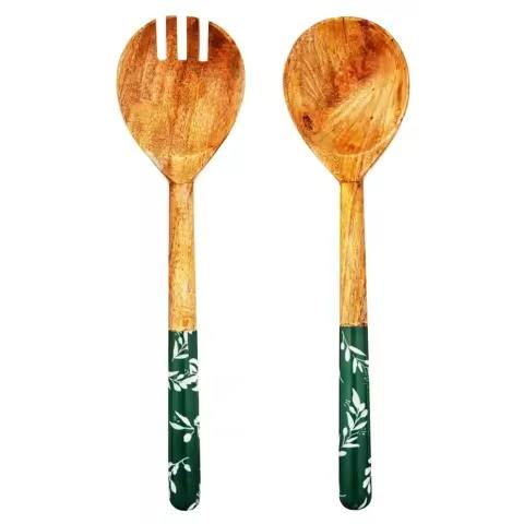 ชุดช้อนสลัดโลหะและไม้สีตามสั่ง เป็นมิตรกับสิ่งแวดล้อม ล้างในเครื่องล้างจานได้ พร้อมอุปกรณ์เสริมสำหรับสลัด