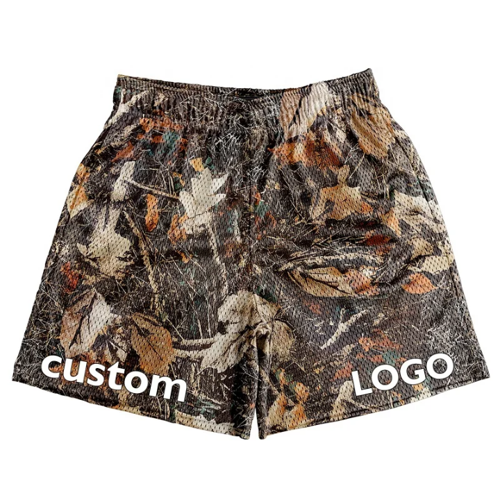 กางเกงขาสั้นผ้าตาข่ายสำหรับผู้ชายกางเกงขาสั้นผ้าตาข่ายขนาดพิเศษสำหรับยิมกางเกงขาสั้นผ้าแห้งเร็วพิมพ์โลโก้ตามสั่ง