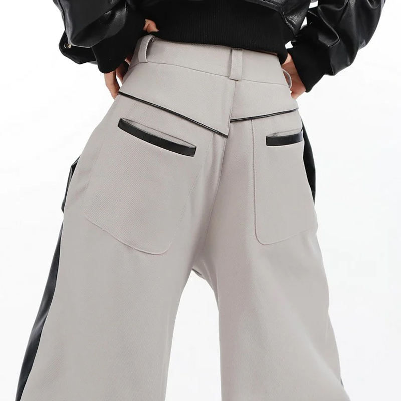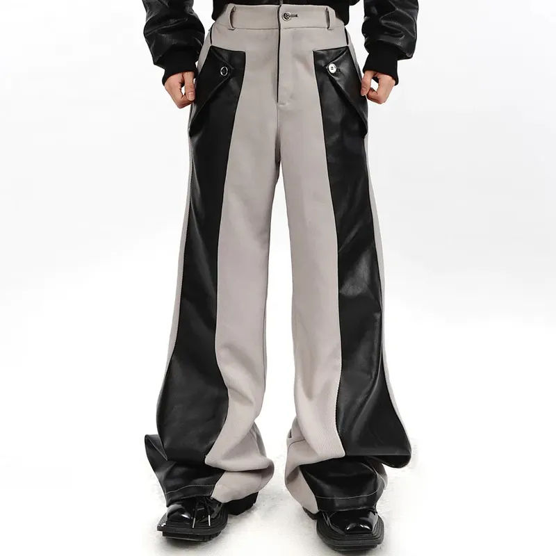 กางเกงคาร์โก้ทรงตรงขากว้างเย็บตะเข็บหนัง PU สีตามสั่ง ขายส่งสำหรับผู้ชาย