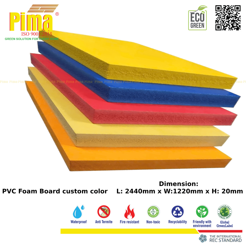 แผ่นโฟมพีวีซี WPC สีตามสั่งความหนา20มม. 0.6กรัม/ความหนาแน่น cm3แม่พิมพ์ผลิตจากโรงงานสำหรับการโฆษณาในครัว