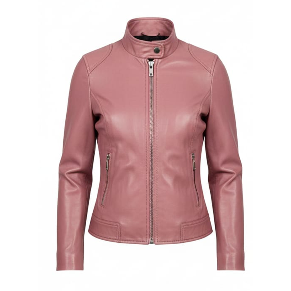 Custom Color Real Leather Women's Slim Fit Motorcycle Jacket Waterproof Cotton Lining Vintage Biker Coat