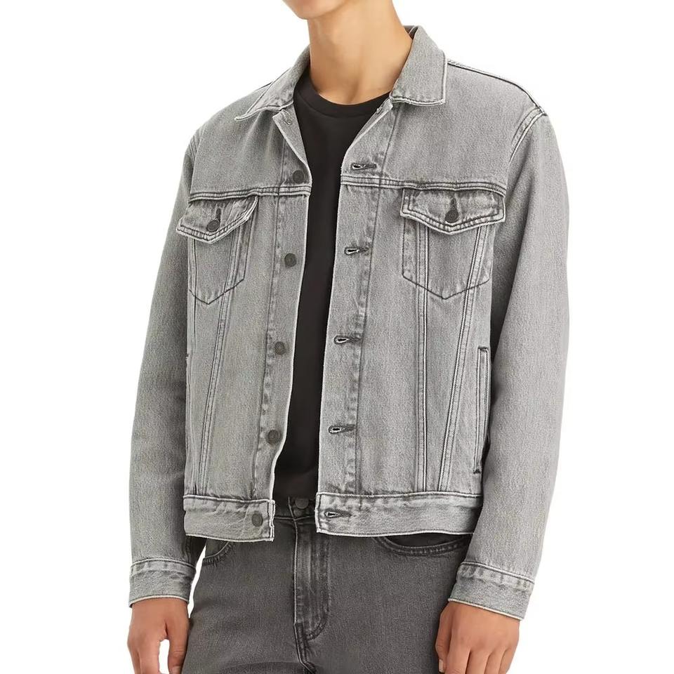 แจ็คเก็ตยีนส์ผู้ชายสไตล์ไฮสตรีท ผลิตในปากีสถาน สีและขนาดตามสั่ง ดีไซน์พิมพ์ลายตามสั่ง ผ้าฝ้าย 100% ระบายอากาศได้ดี เหมาะสำหรับฤดูหนาว ด้านหน้า