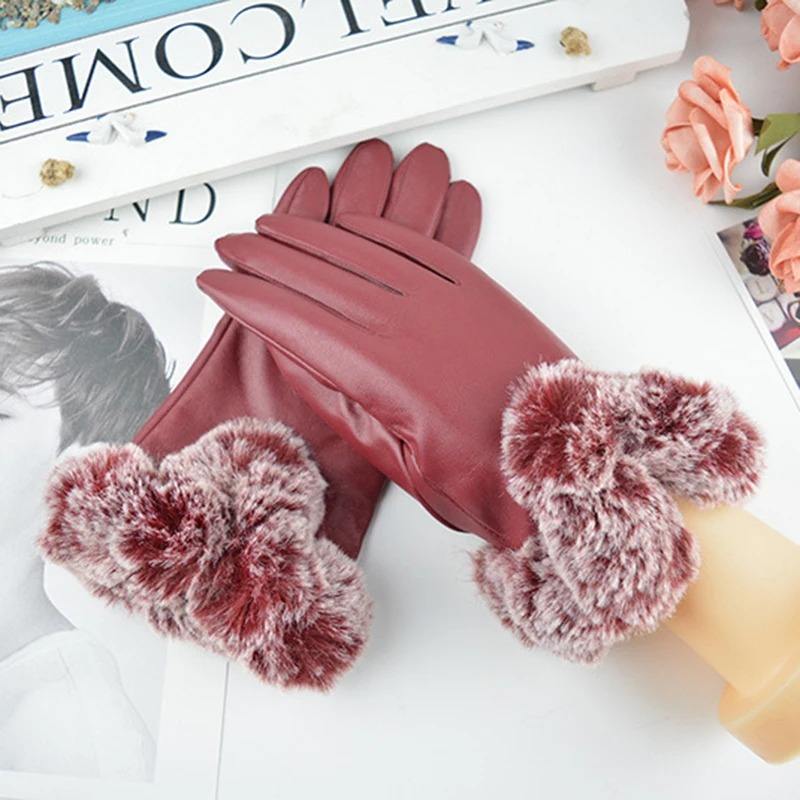 ถุงมือหนังสำหรับผู้หญิงถุงมือหนังแบบเต็มนิ้วถุงมือฤดูหนาวสไตล์แฟชั่นฤดูหนาวสีตามสั่ง