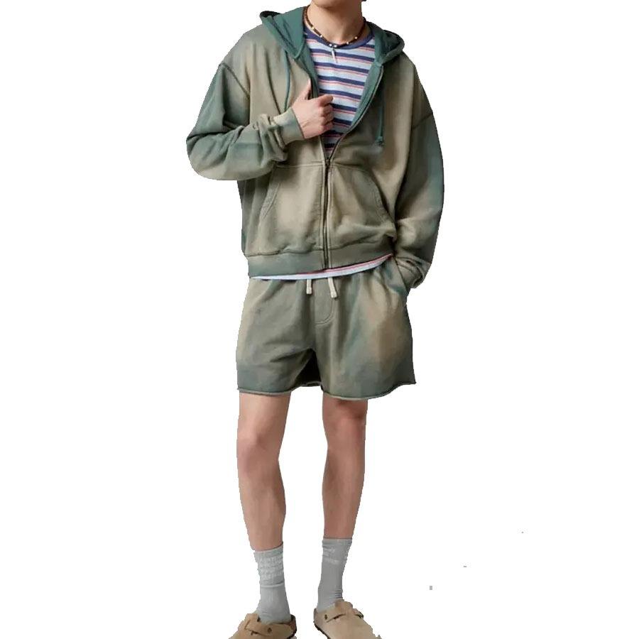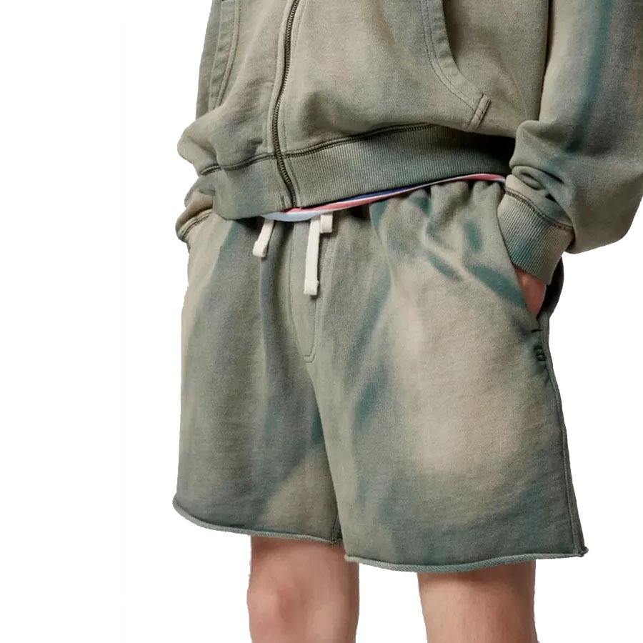 โลโก้การพิมพ์พัฟสีสันสดใสแบบกําหนดเองล้างผ้าฝ้ายเทอร์รี่ฝรั่งเศสด้อยวินเทจผู้ชายกางเกงขาสั้นล้างกรด