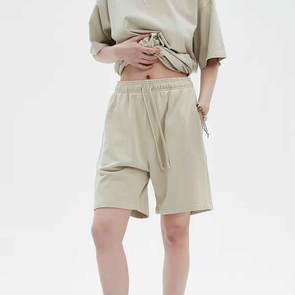 โลโก้การพิมพ์พัฟสีสันสดใสแบบกําหนดเองผ้าฝ้ายฝรั่งเศสเทอร์รี่ด้อยวินเทจผู้ชายกางเกงขาสั้นล้างกรดความยาวเสื้อผ้าปกติ