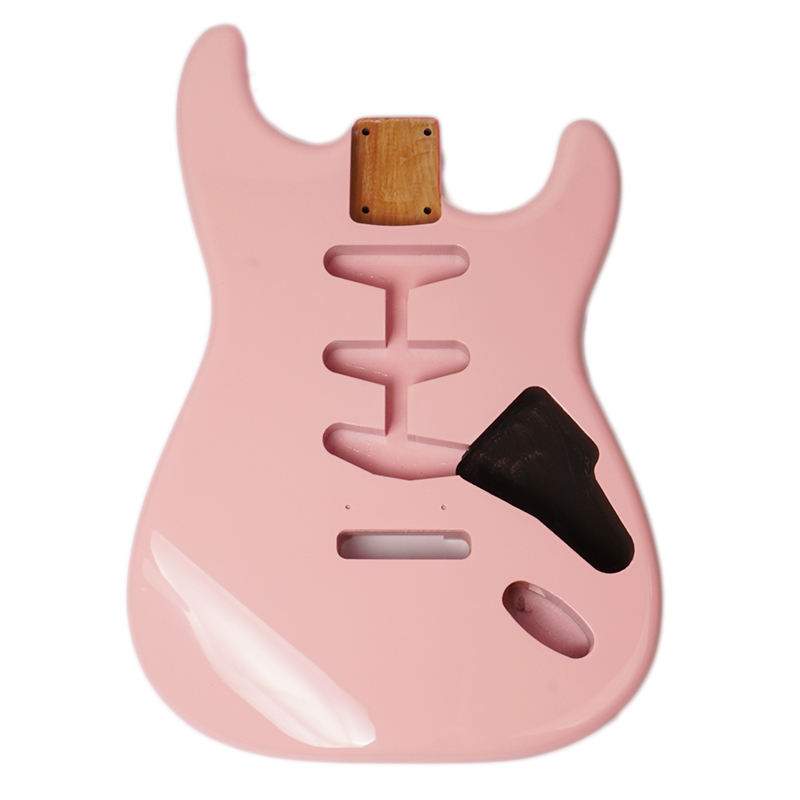 ตัวกีตาร์ไฟฟ้าสีชมพูแบบเปล่า ไม่มีการตกแต่ง สีสันตามสั่ง ทำจากไม้ Alder พร้อมลายแกะสลักบนไม้เมเปิล แบบเปล่าไม่มีการลงสี สำหรับกีตาร์เบสแบบโปร่ง ผลิตตามแบบ OEM
