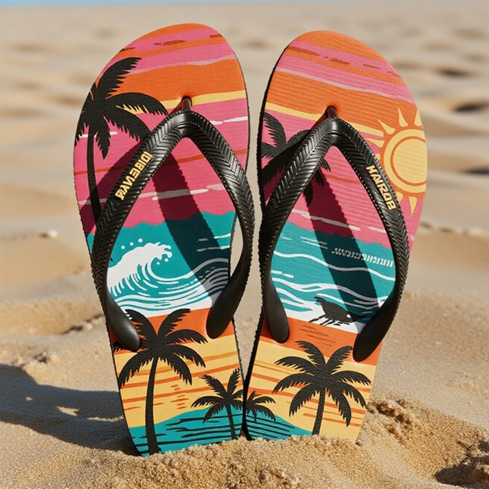 รองเท้าแตะลายคลื่นสีสันสดใสสำหรับวัยรุ่นชายหญิง รองเท้าชายหาดลายดอกไม้กันลื่น รองเท้าแตะฤดูร้อน ผลิตจากโรงงานแบบ OEM