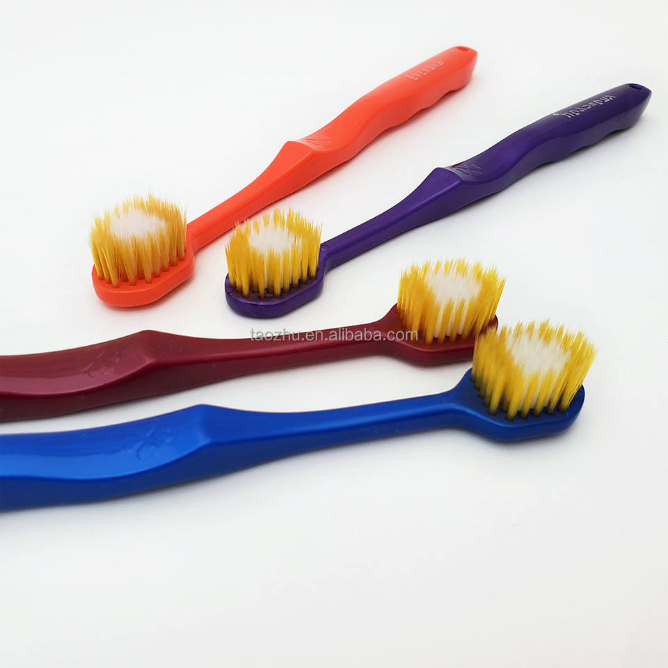แปรงสีฟันสำหรับผู้ใหญ่หัวแปรงกว้างแบบสั้นพลาสติกแข็งปลายแหลมปลายแต่งเทปขนแปรงถ่านนุ่มสีตามสั่ง