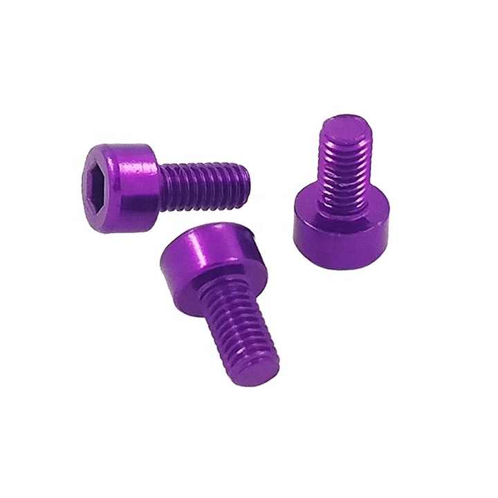 สกรูหัวหกเหลี่ยมอลูมิเนียม DIN912 M4 สีม่วงแบบอะโนไดซ์ ขนาดและสีตามสั่ง