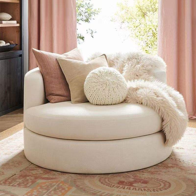 โซฟาทรงกลมแบบมีเบาะรองนั่ง ทำจากโฟมอัดแน่น นั่งสบาย เหมาะสำหรับห้องนั่งเล่นหรือห้องนอน พร้อมหมอน