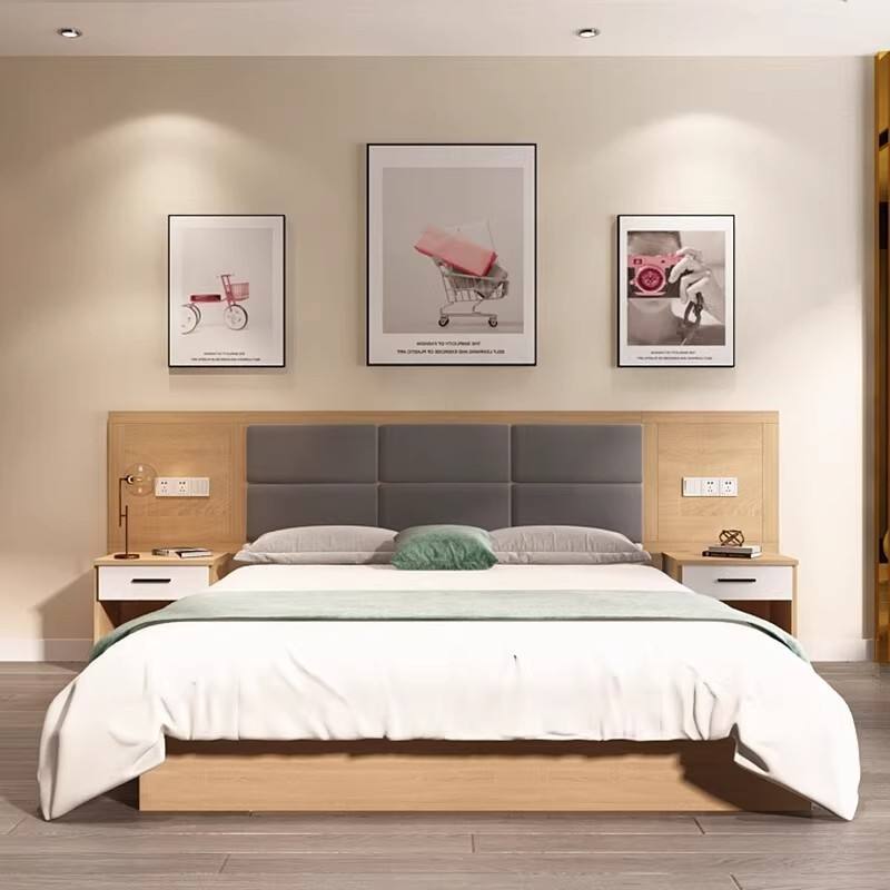 เตียงโรงแรมทำจากไม้แข็งเฟอร์นิเจอร์โรงแรมเตียงขนาดคิงไซส์
