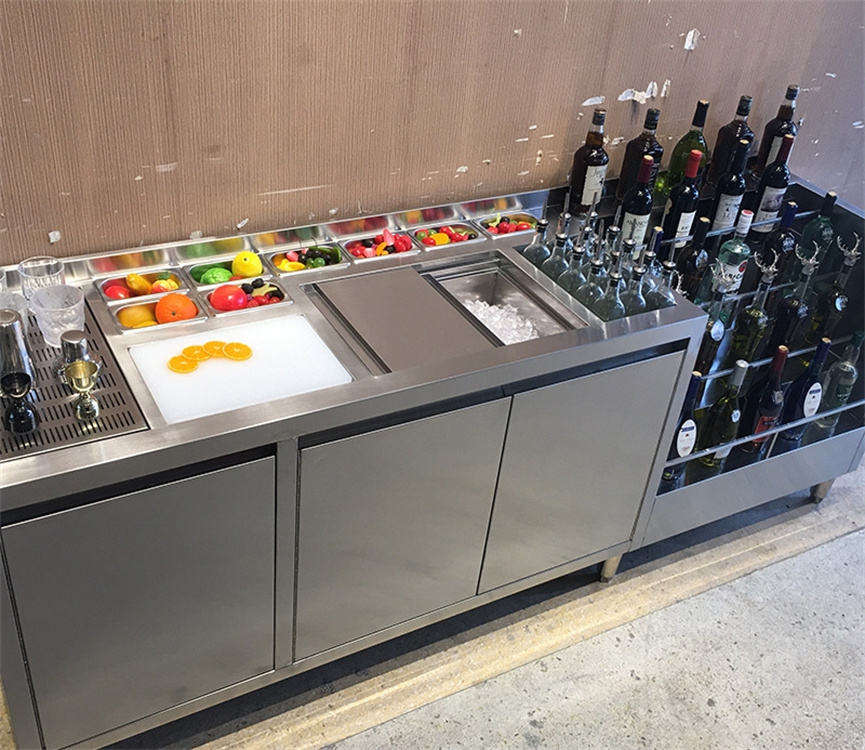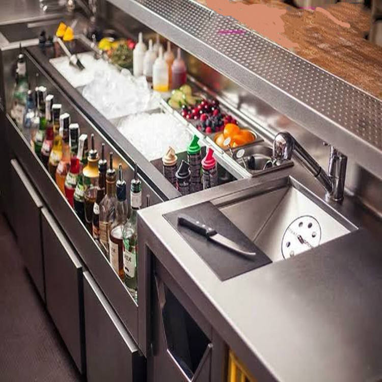 เคาน์เตอร์บาร์สแตนเลสสั่งทำพิเศษสำหรับร้านค้า สถานบันเทิง คาเฟ่ ร้านอาหาร พร้อมอ่างล้างมือและชุดบาร์