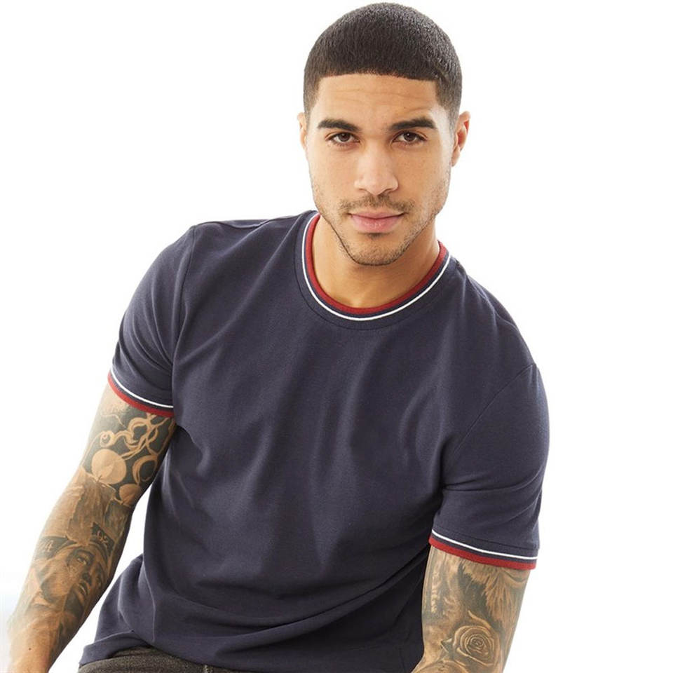 โลโก้บริษัทที่กําหนดเองบุรุษ 5.4-oz ผ้าฝ้าย 100% Ringer Tee เสื้อยืดปกติพอดีสบายๆ Tri-ผสม Tee T เสื้อ
