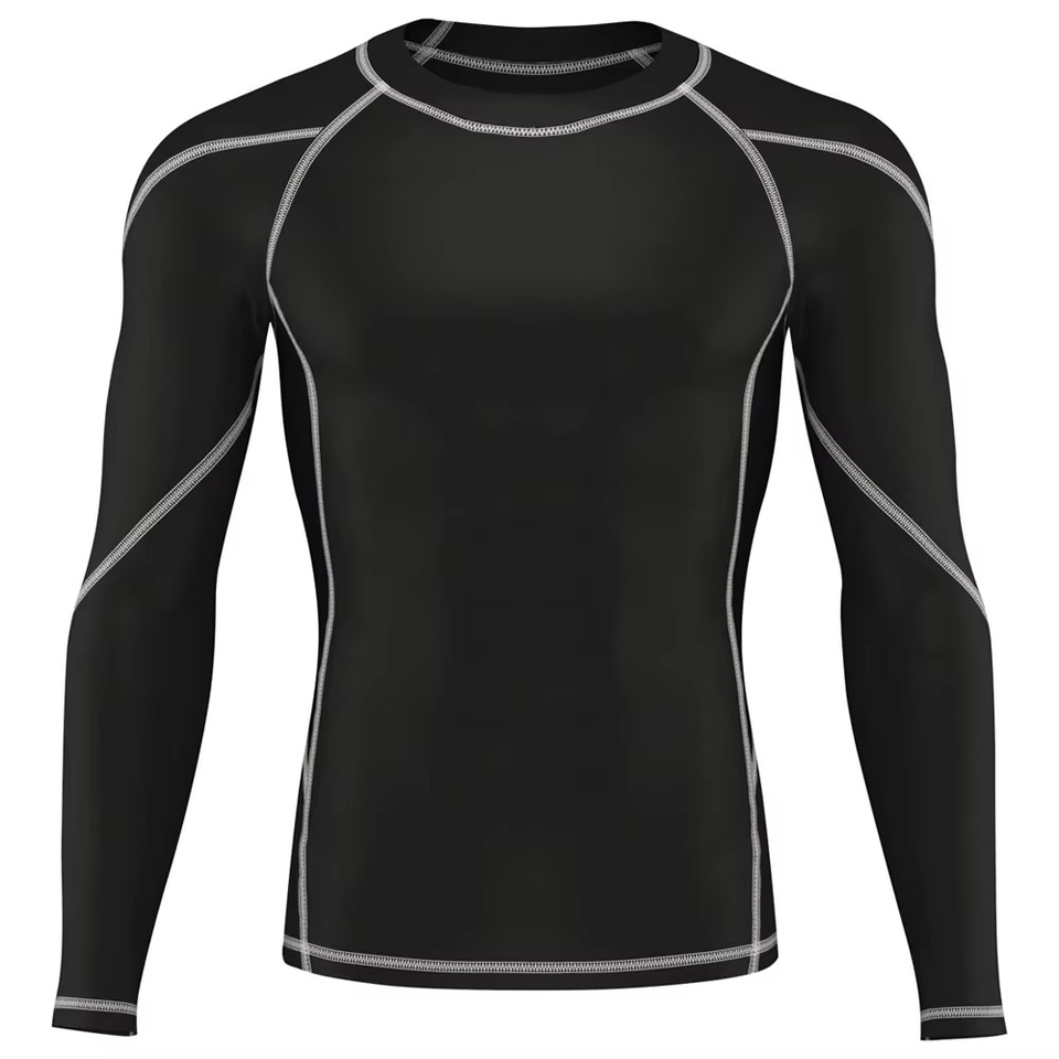 เสื้อยิมคอมเพรสชั่นแขนยาวแบบกำหนดเอง เสื้อรัดกล้ามเนื้อ BJJ สวมใส่สบาย พิมพ์ลายดิจิทัลสำหรับผู้ชาย ผ้ายืดสแปนเด็กซ์/โพลีเอสเตอร์