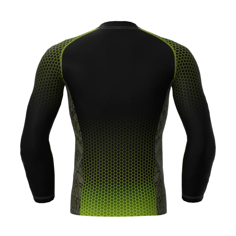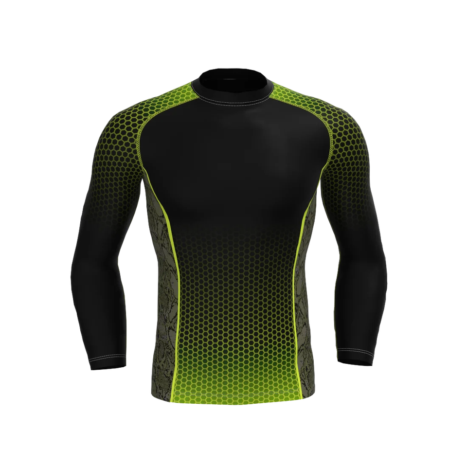 เสื้อคอมเพรสชั่นผู้ชายแบบกำหนดเอง เสื้อรัดกล้ามเนื้อแบบซับลิเมชั่นสำหรับผู้ชาย แขนยาวสำหรับการต่อสู้