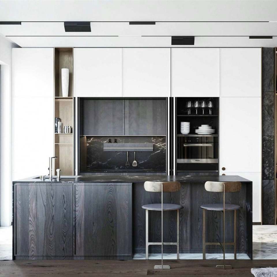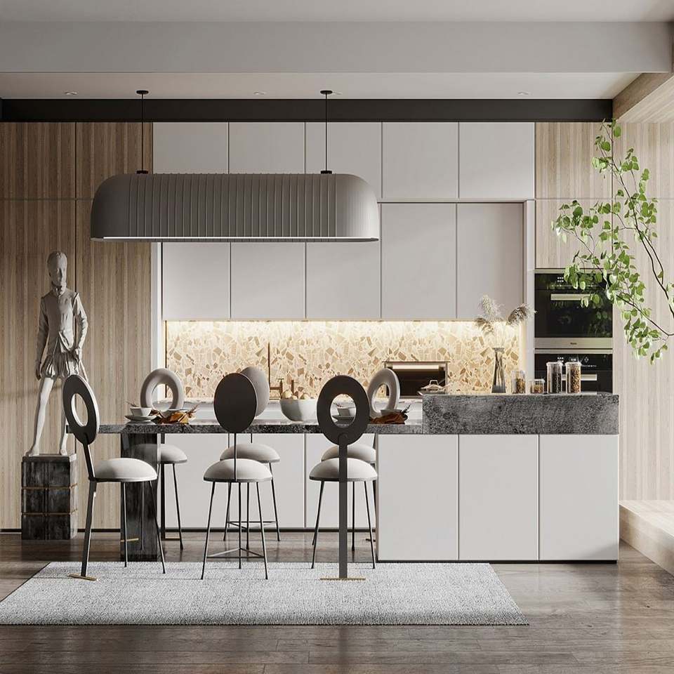 ชุดตู้ครัวแบบเกาะกลางสไตล์ร่วมสมัย ชุดเฟอร์นิเจอร์ครัวครบชุด ตู้ครัวแบบแขวนผนัง