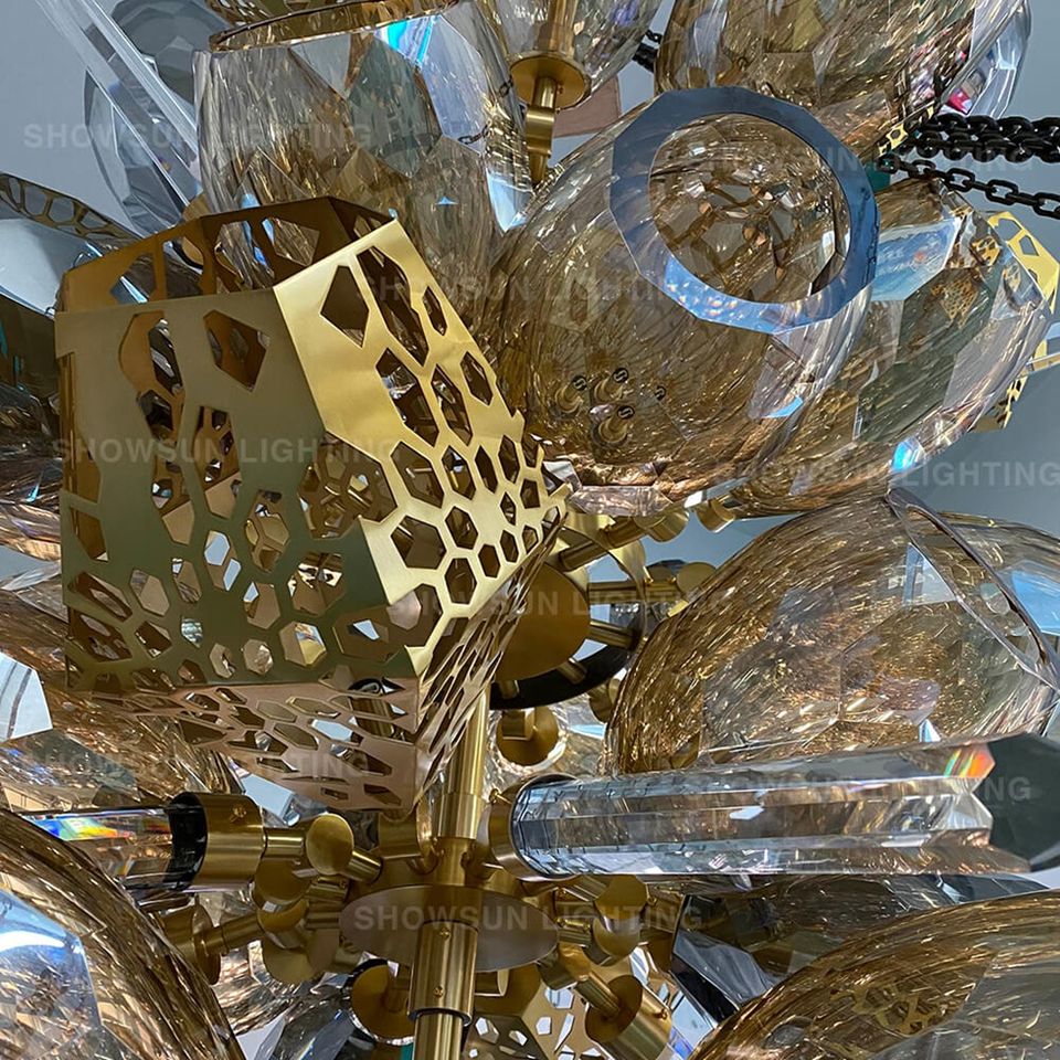 โคมระย้าแก้ว LED ทันสมัยตกแต่งในร่มขนาดใหญ่สไตล์วิลล่าสำหรับโรงแรมวิลล่าออกแบบได้ตามต้องการ