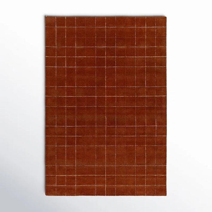พรมขนสัตว์เทอร์ราคอตต้าแบบร่วมสมัย ทำมือ ลายตารางเล็กๆ สำหรับตกแต่งบ้าน ห้องนอน เหมาะสำหรับปิกนิก