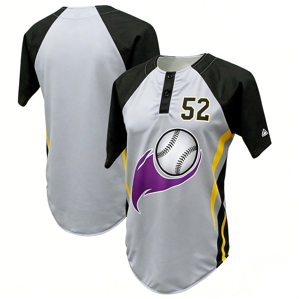 เสื้อเบสบอลคอเฮนลีย์แบบแร็กแลนลายเปลวไฟสั่งทำพิเศษ ผ้าโพลีเอสเตอร์ 100% ระบายเหงื่อได้ดี ผู้ผลิตชุดกีฬาแบบ OEM