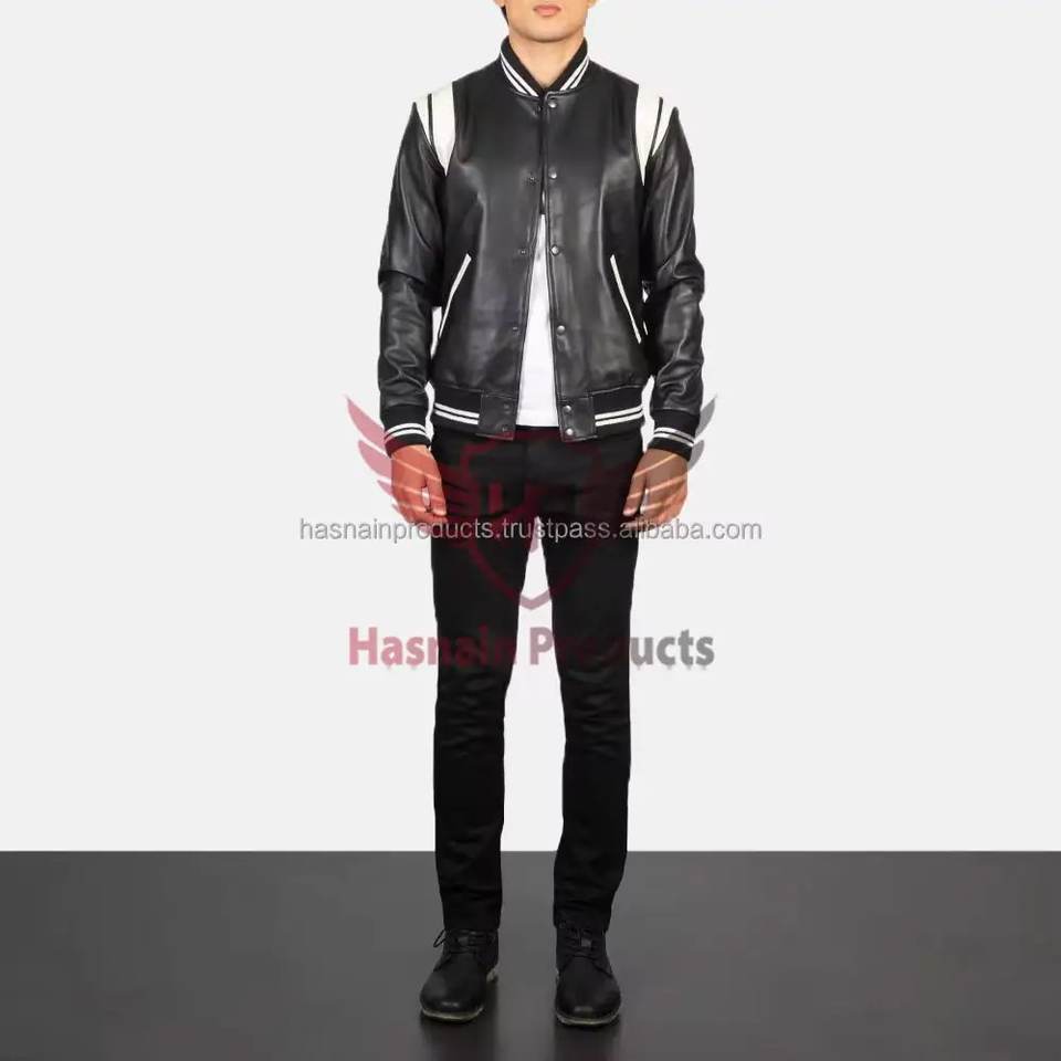 แจ็กเก็ตหนังบอมเบอร์สำหรับผู้ชายดีไซน์สุดเท่พร้อมหนังแท้และขนแกะสำหรับฤดูหนาว