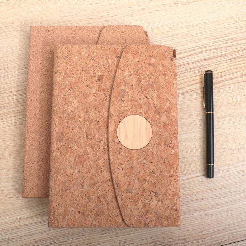 A5โน้ตบุ๊คไม้ก๊อกสั่งทำพร้อมฝาปิดแม่เหล็ก-ของขวัญธุรกิจส่วนบุคคลและวารสารที่มีตราสินค้า