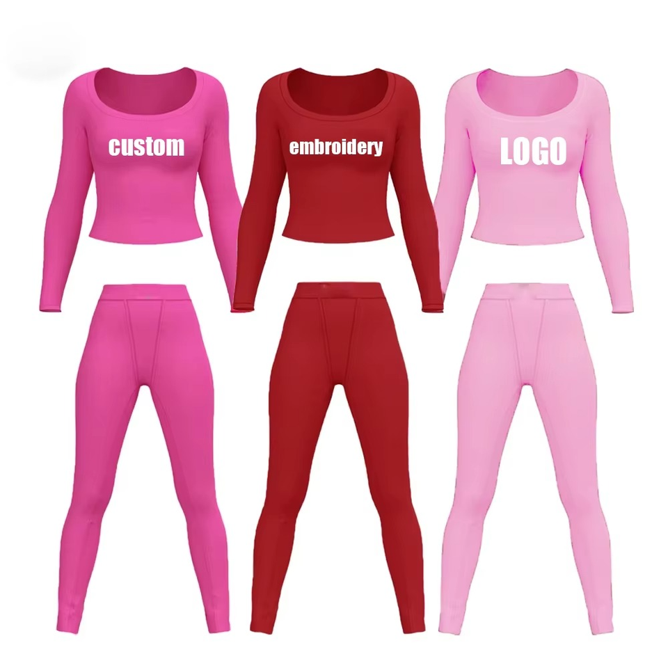 ชุด2ชิ้นสำหรับผู้หญิงชุด2ชิ้นเสื้อแขนสั้นและเลกกิ้งชุดเลานจ์ทำจากผ้าฝ้ายตามสั่ง